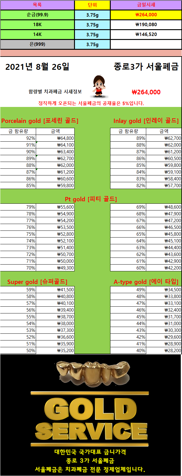 서울폐금의 폐금니 가격은