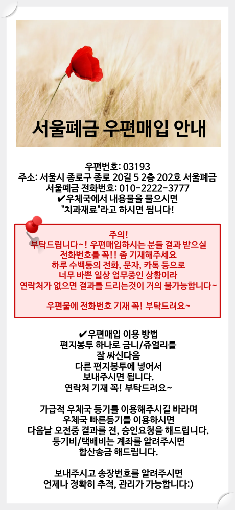서울폐금 우편매입 안내입니다.