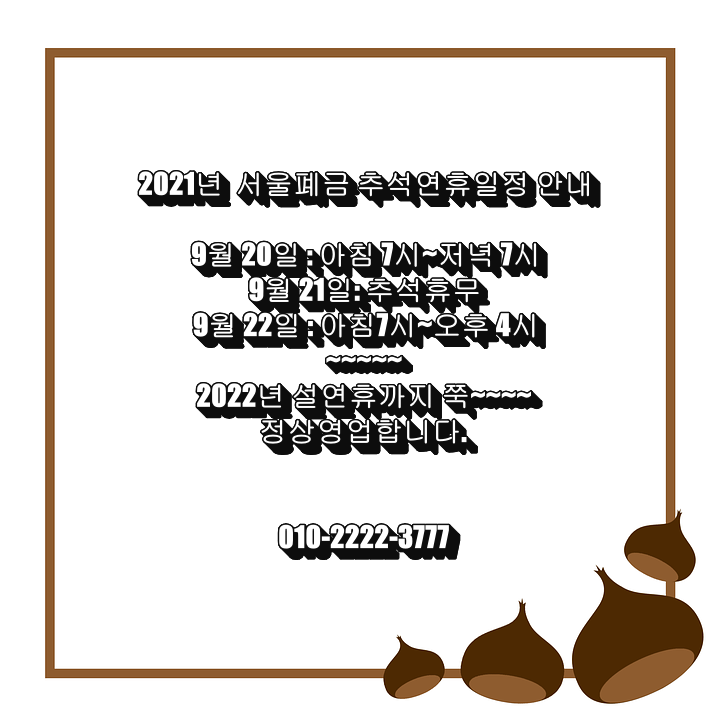 2021년 한가위 시즌 서울폐금 영업시간 안내입니다.