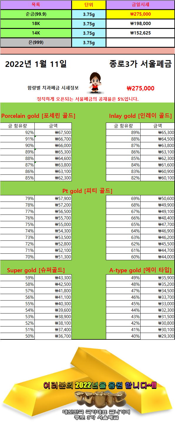 | 금이빨 시세 1월 13일 금이빨가격 (0) | 2022.01.13 |