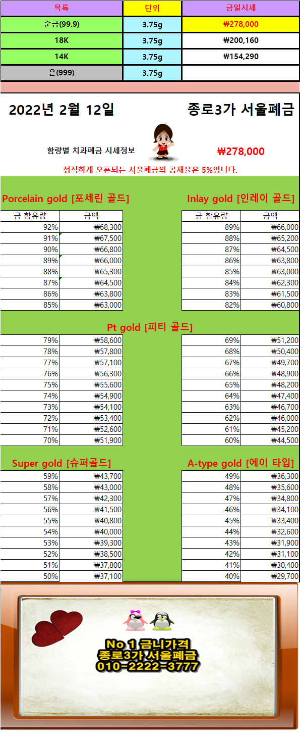 | 2/ 22 금니가격/금니시세 완전 좋습니다~! (0) | 2022.02.22 |