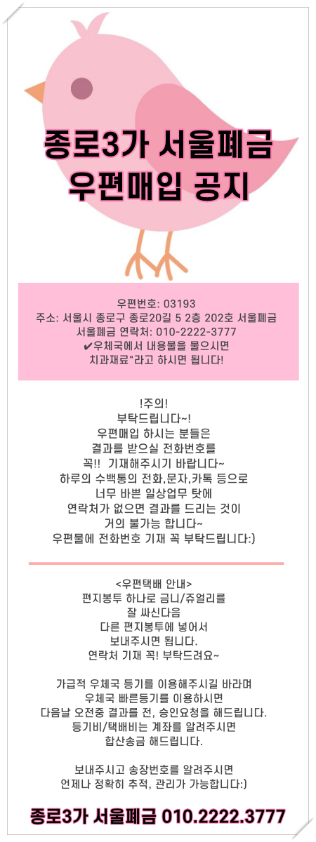 서울폐금 우편매입 안내입니다.